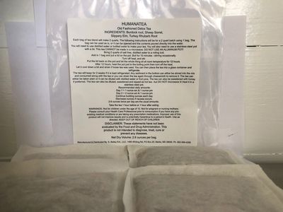 Hu-Mana-Tea is to be taken 1 hour BEFORE eating OR 1 hour AFTER eating. Taking any tea with Burdock Root can cause nausea if taken with food. Hu-Mana-Tea will not interfere with any medications - but do not take your medications or supplements 1 hour before or after taking the tea. Take them at another time of the day. It can also be taken while on radiation or chemotherapy treatments. You CAN take the HuManaTea at the SAME TIME you take HUMAWORM or any other the other formulas sold here.